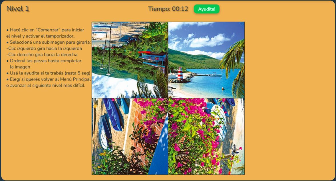- Hacé clic en “Comenzar” para iniciar el nivel y activar el temporizador..